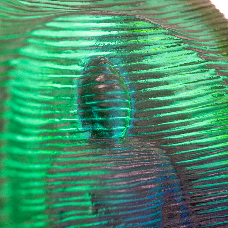 Itse asiassa on aivan normaalia, että lasiteokset sisältävät kuplia. Tämä johtuu siitä, että käytämme kadonneen vahan valutekniikkaa, joka luonnollisesti johtaa kuplien läsnäoloon kappaleiden sisällä. Tapa, jolla valo taittuu näiden sisäisten kuplien läpi, osoittaa lasimateriaalin ainutlaatuisen viehätyksen. Se havainnollistaa kauniisti, että lasi todella toimii valoastiana.