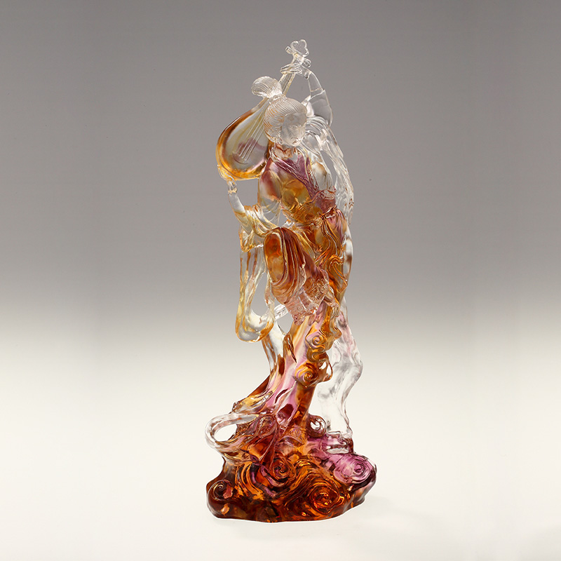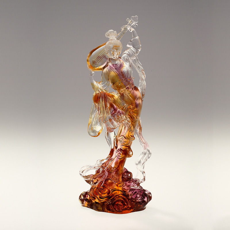 Tämän siron lasiveistoksen naishahmo on pitkä ja suora, ja siinä on erilaisia ​​tapoja, ikään kuin hänessä olisi loputonta voimaa ja eleganssia. Jokainen yksityiskohta on kuvattu elävästi. Hänen vaatteiden linjat ovat sileät, ikään kuin ne liikkuisivat tuulen mukana, osoittaen dynaamista kauneutta. Lasin värisovitus on näppärää, mikä voi olla elegantteja sävyjä tai teräviä kontrasteja, joista kumpi tahansa voi korostaa hänen jaloutta ja erikoisuutta.